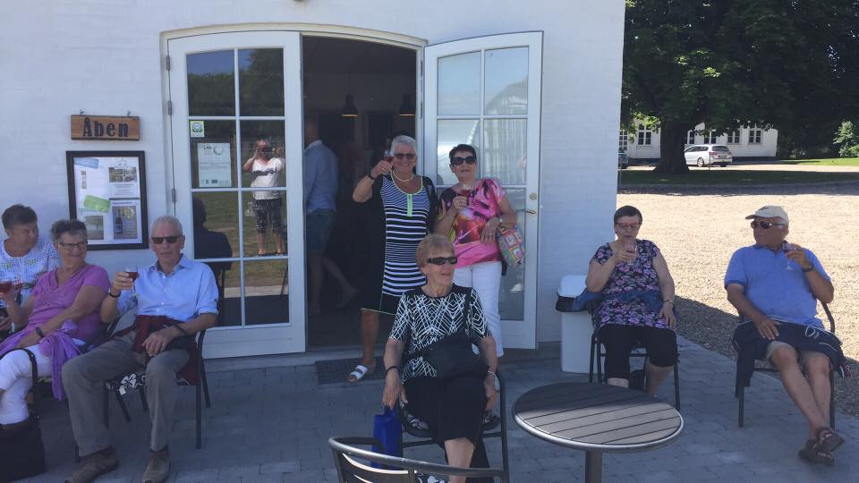 Det var en dejlig tur til Aarø, hvor vi spiste runde bøffer om bord og besøgte en vingård, hvor vi nød et glas køligt hvidvin.